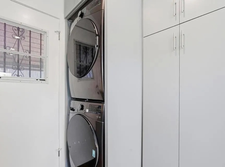 Inside, the home feels fresh and functional with new interior paint, updated finishes, and a layout that works well for both daily living and hosting. The kitchen comes equipped with new appliances, while an in unit washer and dryer adds everyday convenience. Each room includes its own mini split system, allowing for efficient and customizable heating and cooling throughout the home. A tankless water heater further enhances energy efficiency.